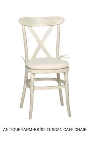 Driftwood is a beautiful, soft color that brings an elegant appearance to our Bistro Chair.  Bistro chairs have contoured, steam-bent "X" backs, tapered legs and handwoven rattan seats that add texture and charm.  These chairs provide a "country" feel without compromising on modernity.  Available in a variety of colors to meet your unique decor.