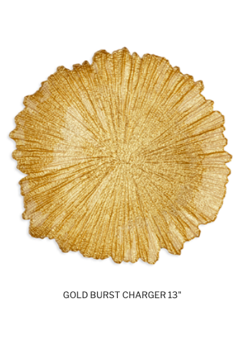 Enhance your table decor with this charger plate. It has an irregular edge and adds an exquisite touch of gold shimmer.