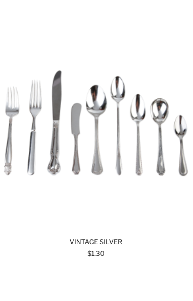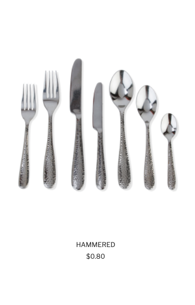 • Set includes butter knife, dinner fork, dinner knife, tablespoon, salad fork, & teaspoon