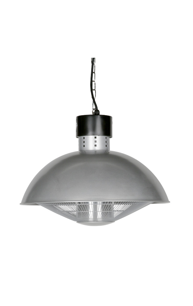 Our Luke 20" diameter hanging heater pendant includes 3 feet of chain for easy installation. The Luke must be installed a minimum of 20" from the ceiling and at least 10' from sidewalls. Requiring a dedicated 15-amp circuit, each has a toggle on-off switch on one side, a touch sensor on the opposite side to adjust the heat, and a remote to adjust the heat from the ground after installation.