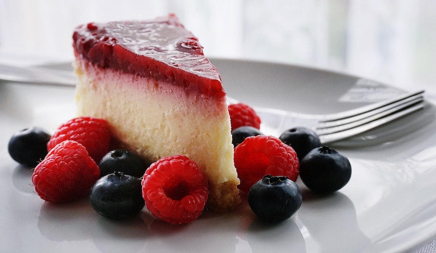 flourless chocolate cake rolled with raspberries & cream cheese frosting