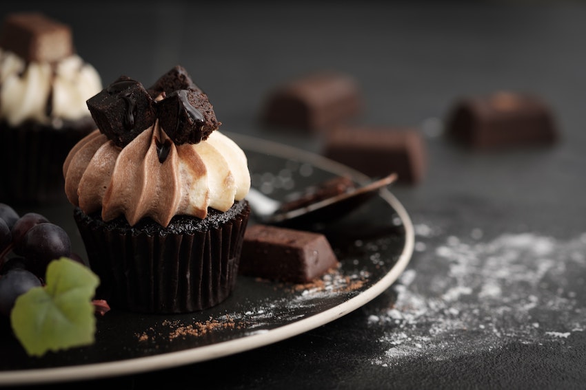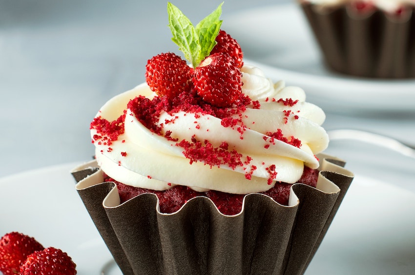 an assortment of vanilla, chocolate & red velvet cupcakes