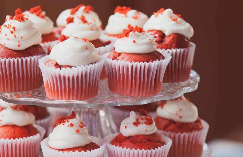 a mix of vanilla, chocolate & red velvet cupcakes