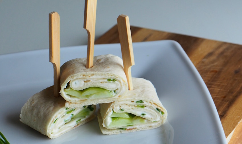 cucumber, dill, creme fraiche wrapped in a flour tortilla