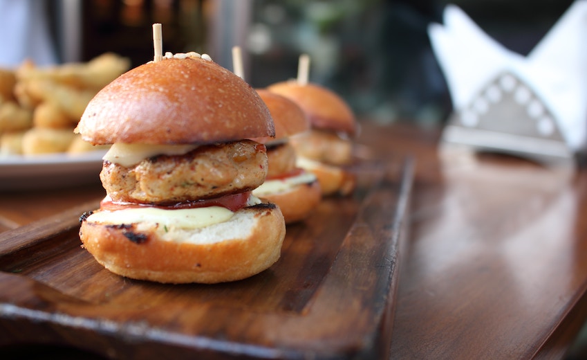grilled chicken, swiss cheese, lettuce, & mayo on a mini brioche bun