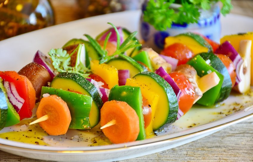 fresh Mediterranean vegetables & mozzarella cheese on a skewer
