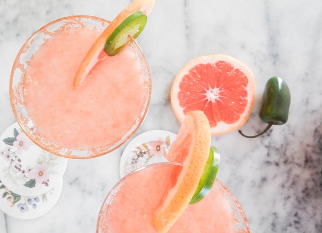 Fresh grapefruit, lime, jalapeno, & agave nectar; garnished with a grapefruit & jalapeno slice