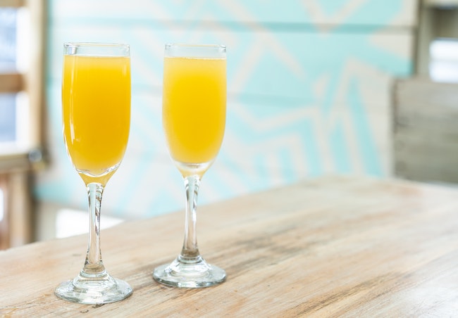 Freshly pressed orange juice served with sparkling wine
