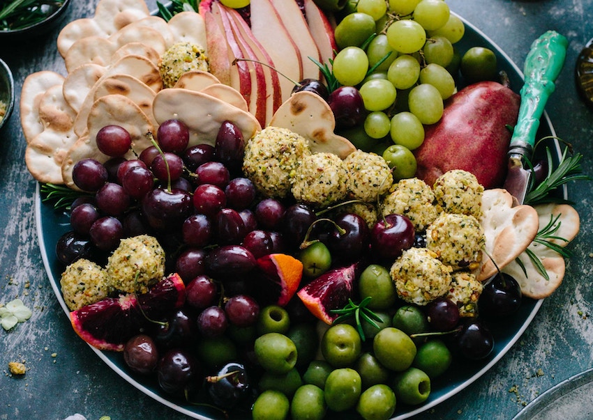 Assorted dried meats, roasted seasonal vegetables, and seasonal accouterments