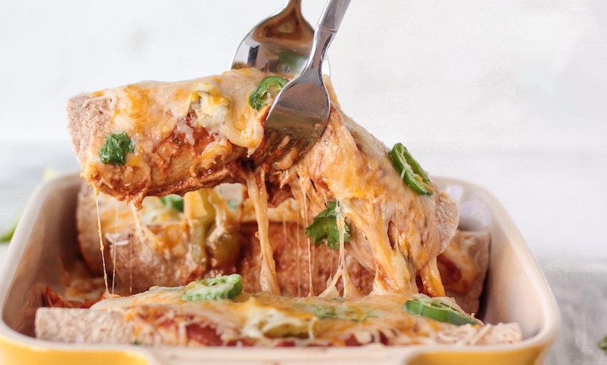 includes beef, chicken, & veggie fillings, rice, black beans, cheese, sour cream, and a selection of salsas