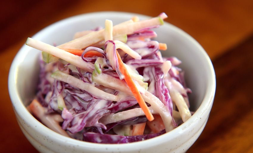 pulled pork, cabbage slaw, & BBQ sauce on a brioche bun