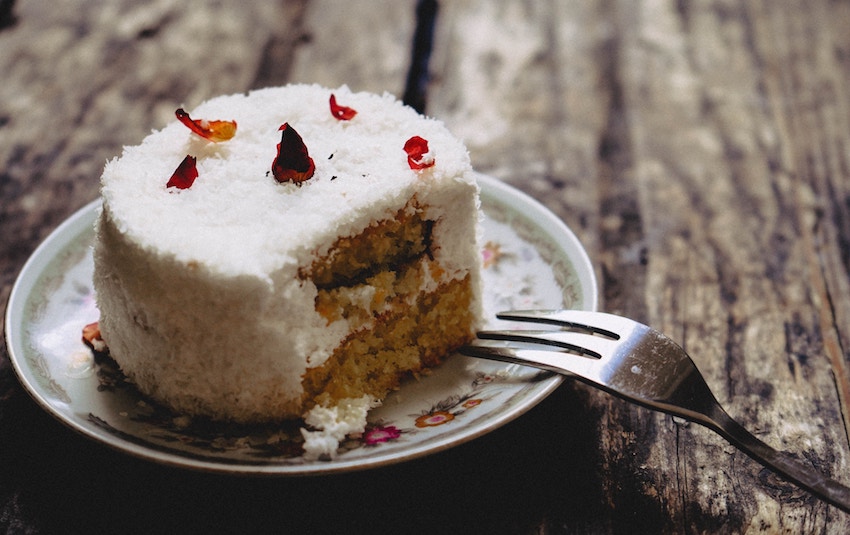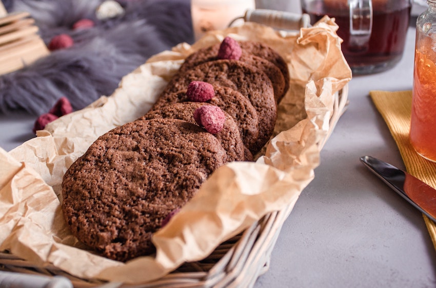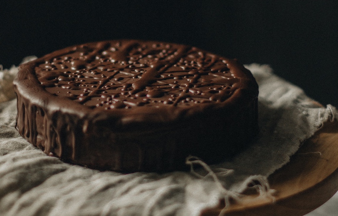 flourless chocolate cake rolled with raspberries & cream cheese frosting