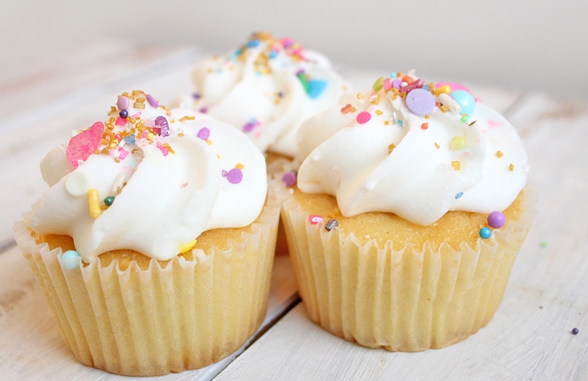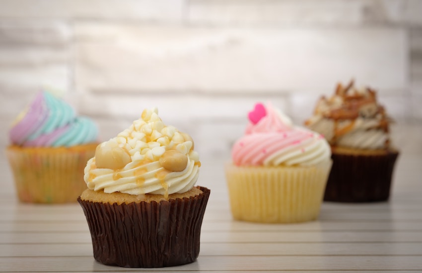 an assortment of vanilla, chocolate & red velvet cupcakes